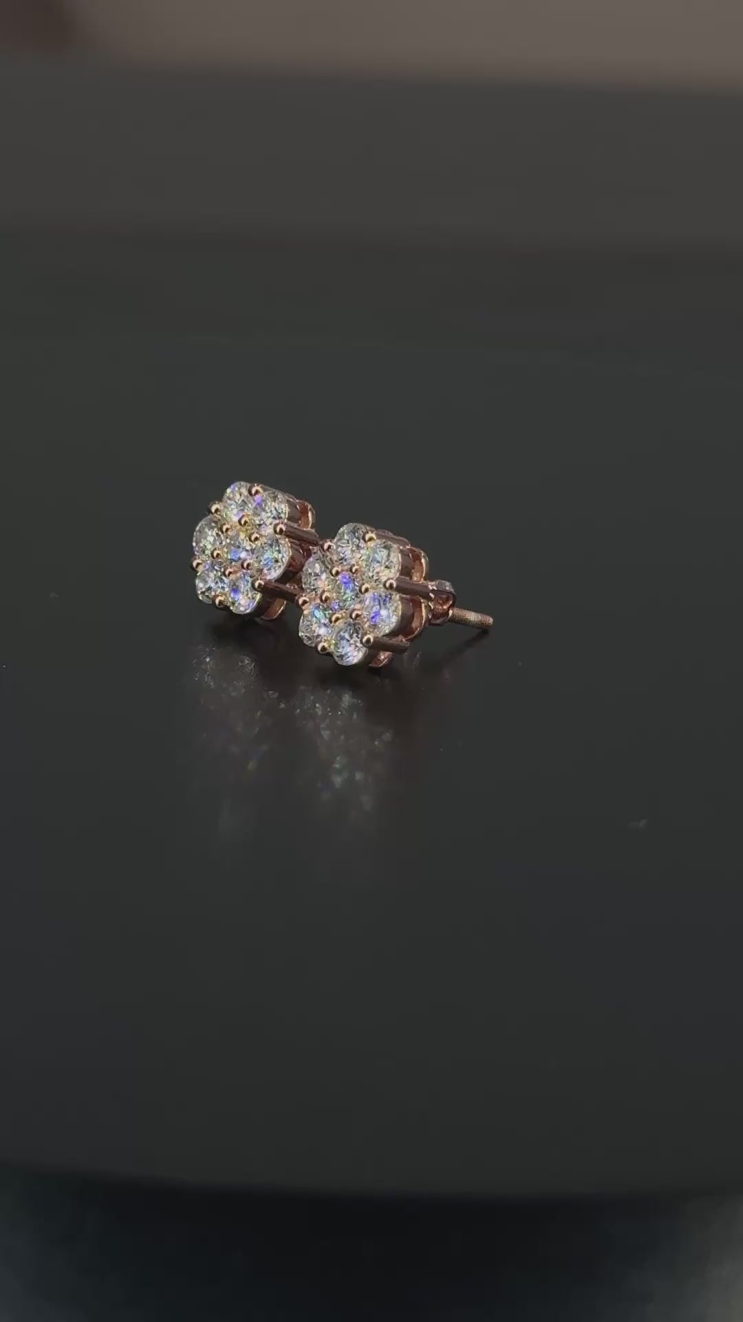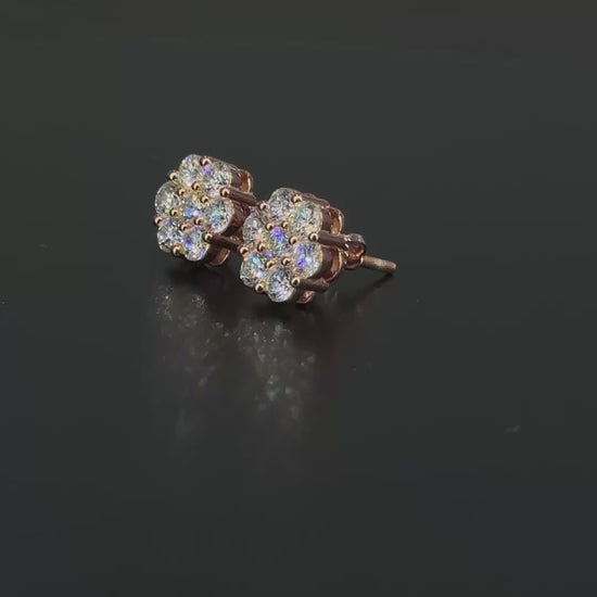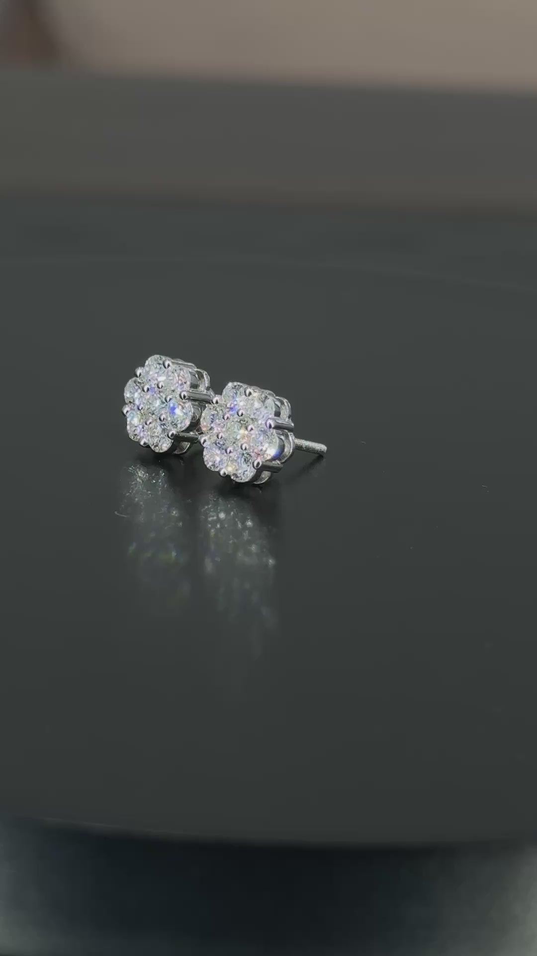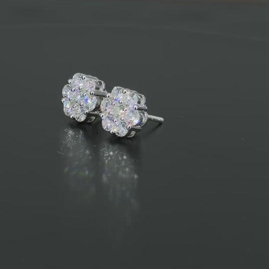 1.75ctw Lab diamond earrings on a sterling silver mounting. Available in white or rose gold plating.